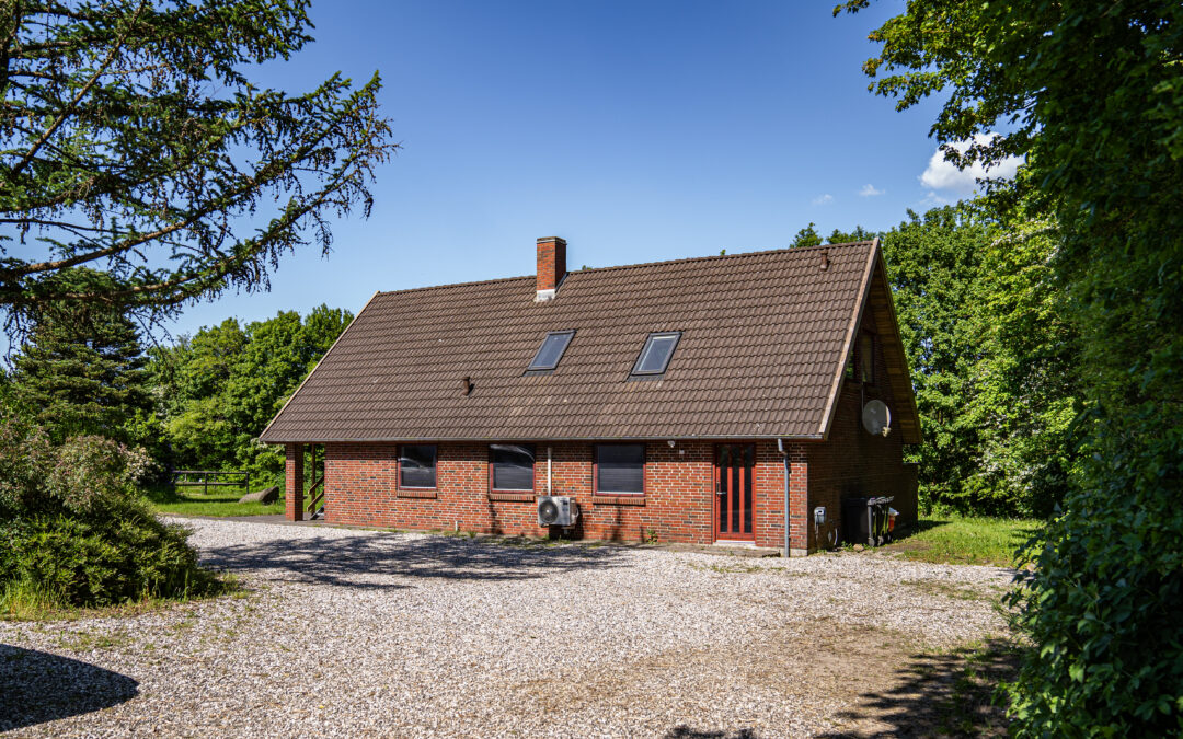 Huset er et tidligere landsted opført i 1986, der ligger uforstyrret for enden af en grusvej. Med en betagende udsigt over landskabet og omgivet af fredfyldt natur er det en ideel base for at finde ro og balance. De nærliggende stier inviterer til rolige gåture, der kan skabe plads til fordybelse og refleksion.